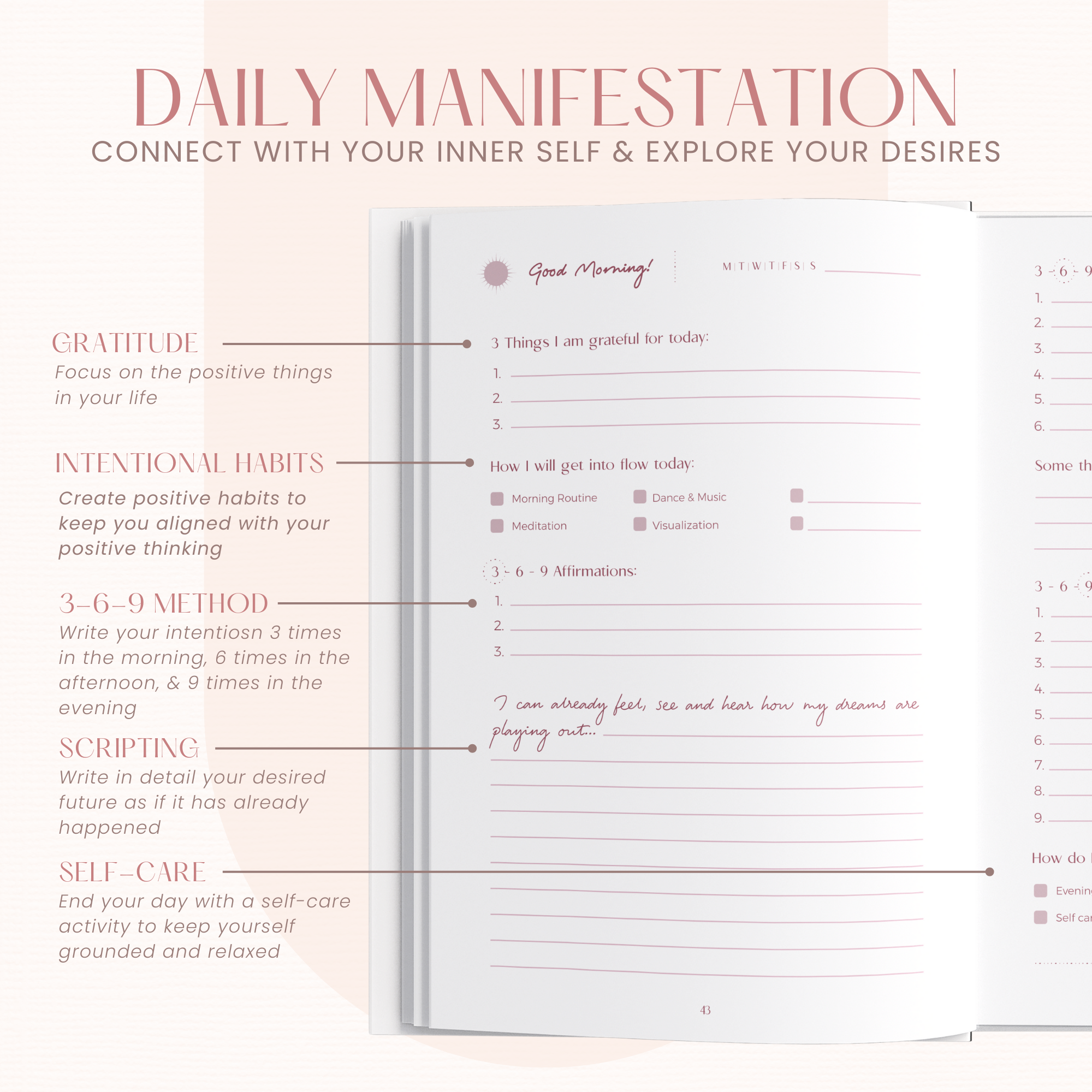 - ✨Daily Manifestation Journal -- This guided and prompted manifestation journal includes everything you need to focus on good and positive things in your life. The productivity planner for women is specially crafted for positive manifestation and improved confidence and mental health as you get on with your day.